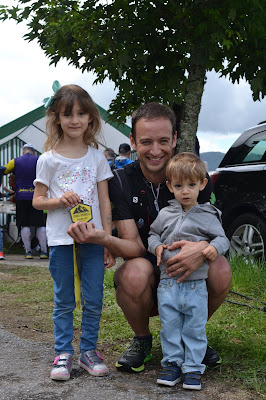 A descida continuou, agora em terrenos mais rurais ou em calçada de granito onde era possível correr mais depressa, até que voltámos à cota do rio para uns quilómetros finais mais técnicos em que os atravessamentos deste eram constantes. Nesta altura cruzámos com a malta dos 23km, o que me cortou um pouco aquela sensação de ir sozinho na montanha. O que não cortou foi a adrenalina, dei tudo naquela descida, sem qualquer gestão de esforço. Tanto que nas pequenas subidas (depois do topo ainda subimos mais 200m) já me sentia a ir um pouco abaixo. Mantivemo-nos no trilho até 150 metros da meta, onde tivemos que subir uma rampa em alcatrão. Lá estavam a Sara e os miúdos, que atravessaram a meta comigo.